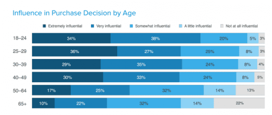 Those under 30 were particularly heavily influenced by UGC. Those over 65 were least influenced by UGC. Clearly then UGC will become over more popular and is an area you should be looking at developing.