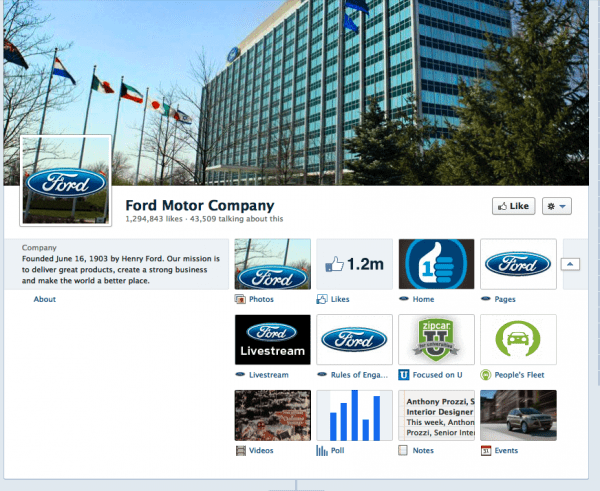 - Data Shows Visits to Custom Tabs on FB Pages Cut in Half By Timeline (-53%) - this shows the importance of using visuals on the views panels to make engagement with Apps more as Ford do here
