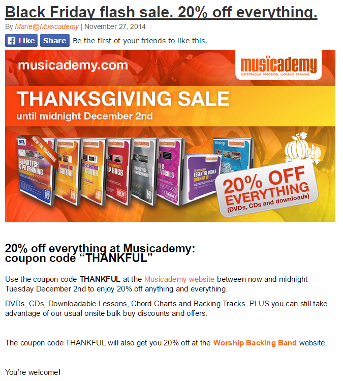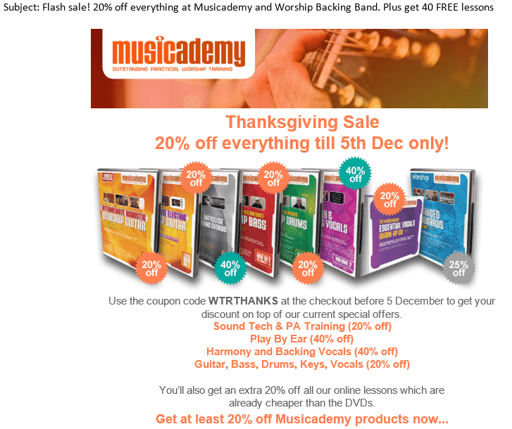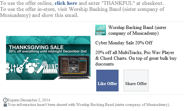 Here's the Worship Backing Band Offer and the email Facebook sends to those who take it up: