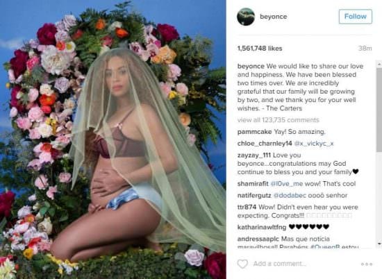 4. Beyonce holds the record for the most liked Instagram with her pregnancy announcement which garnered almost 11 million likes (Instagram, 2017)