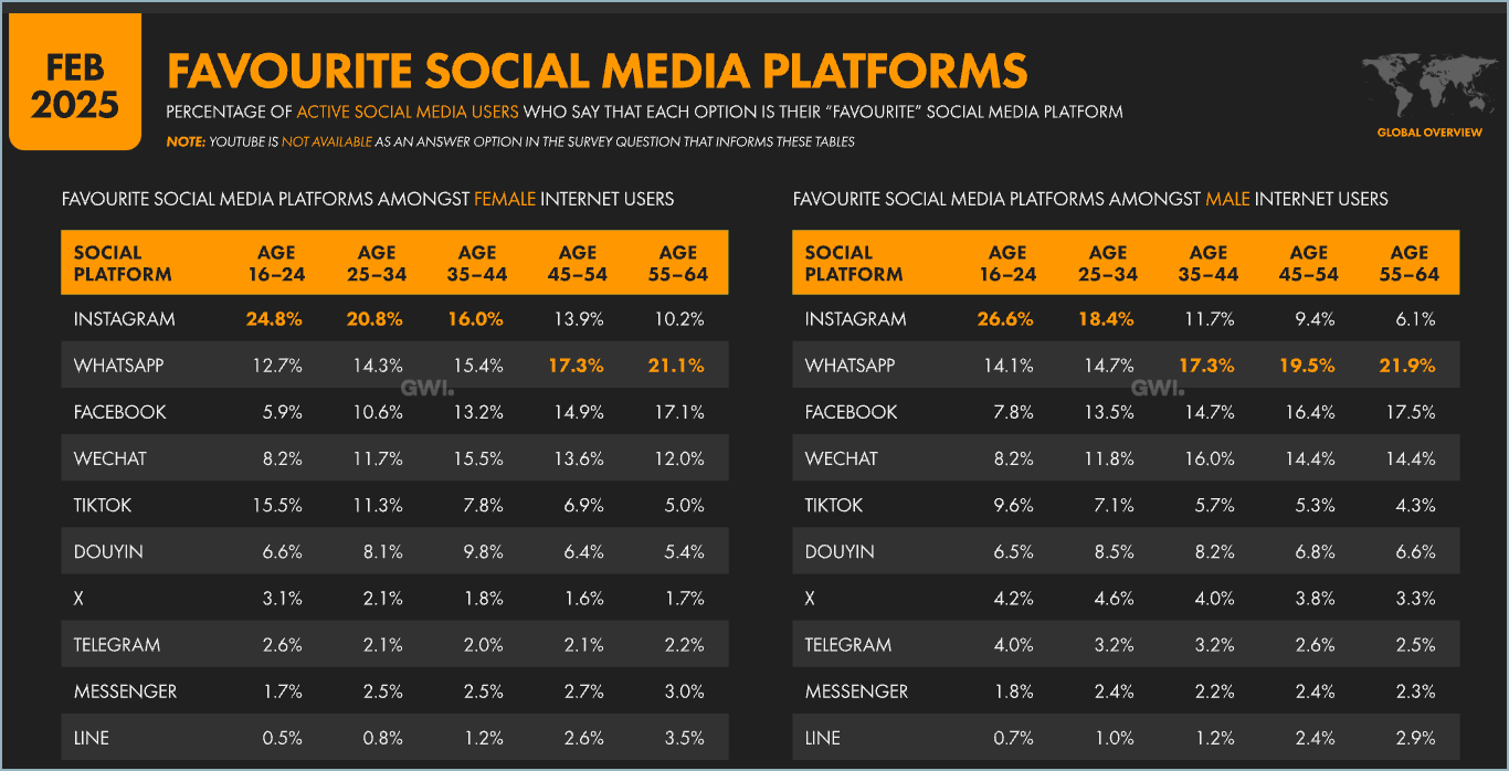 Research by Global WebIndex that we reference in this article shows that globally,