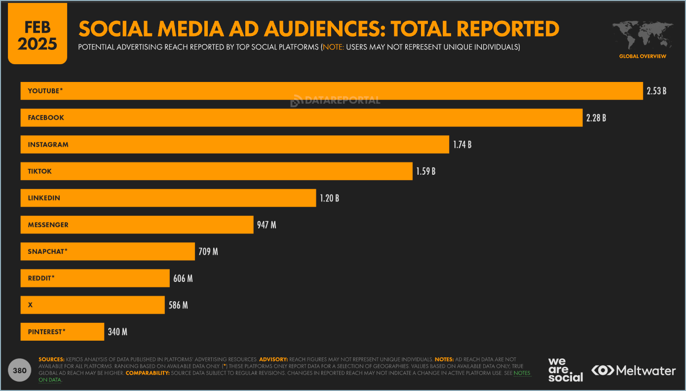 Since it's the start of the year, we have included the most recent research from the end of the previous year, but will update this compilation of research through 2025. We include the lastest figures for the fast growing social networks such as Threads and Bluesky which has recently announced dramatic growth as many people switch from X / Twitter.