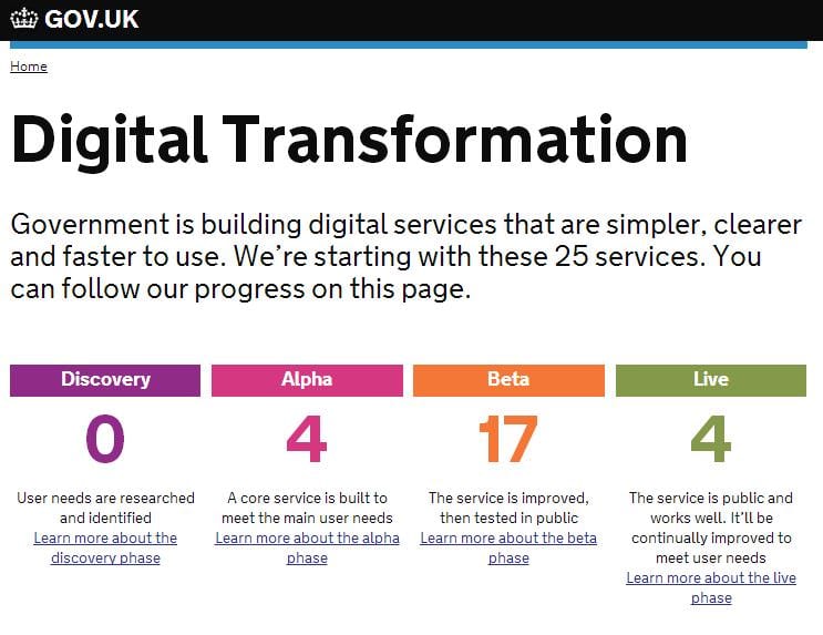 As would be expected within major institutions such as government services, the steps to digital transformation start with discovery, what are the users’ needs, and will it work? Stage two is alpha where the objective is to build a working prototype to be used by stakeholders to gain a greater understanding of a service.