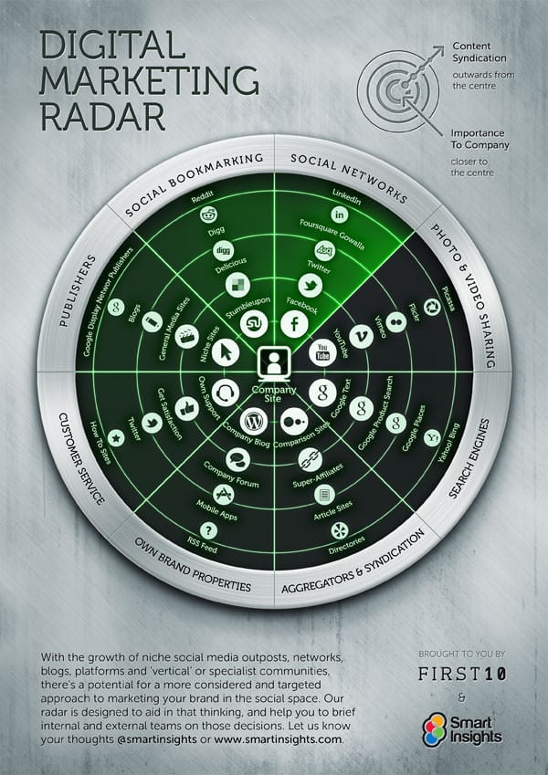 Our radar follows a similar idea to to help think through the options available, but with a couple of differences which make it more applicable to overall digital marketing strategy: