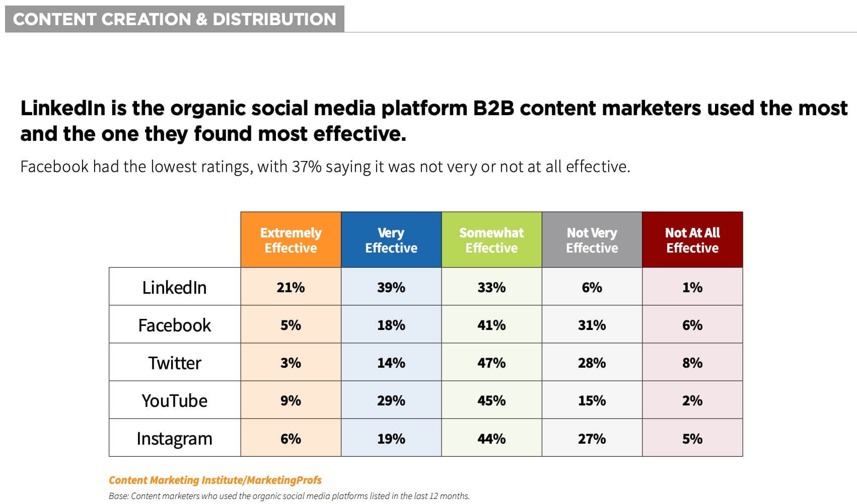 This research is also useful since it shows which content marketing channels are most effective. For B2B marketing, this is clearly LinkedIn.