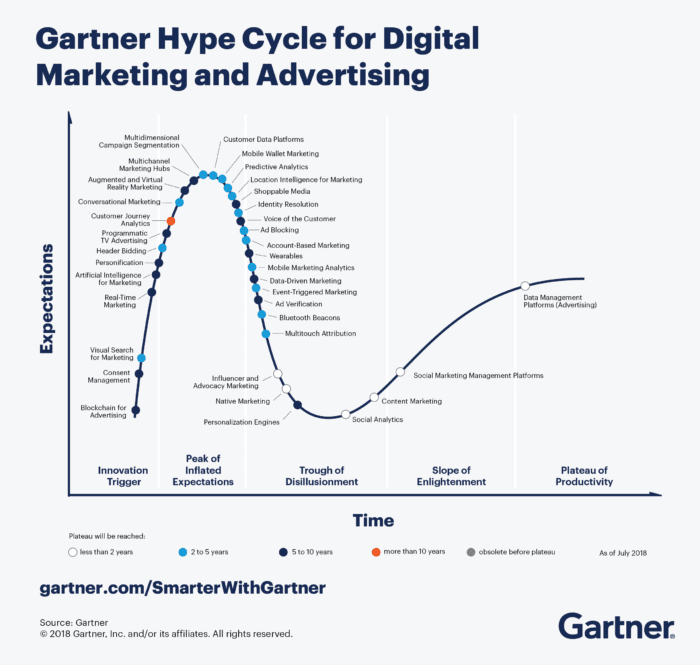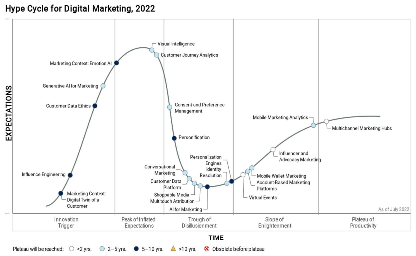 Here is the chart from Gartner of the 2020 digital marketing hype cycle.