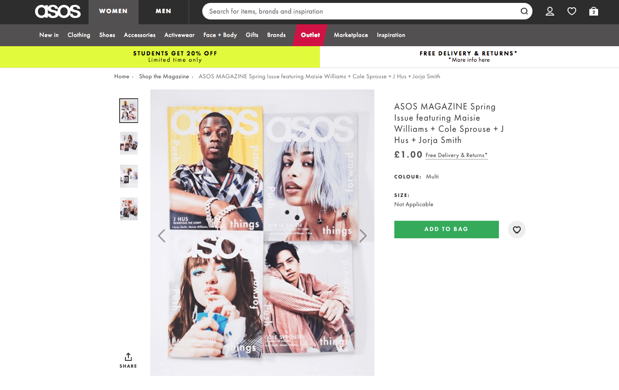 Although ASOS.com is a pureplay, its customer magazine is important in building the brand and influencing sales.