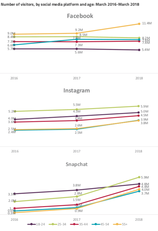Chart of the Day: Research for 2018 shows the dramatic growth of Snapchat and Facebook static for most age groups in the UK