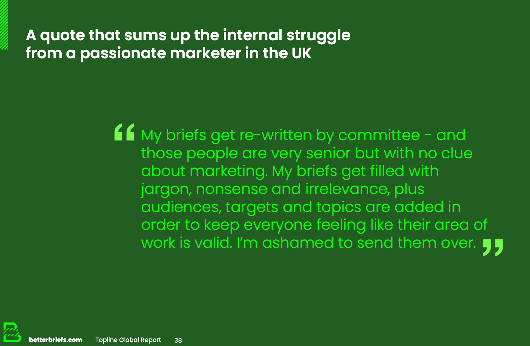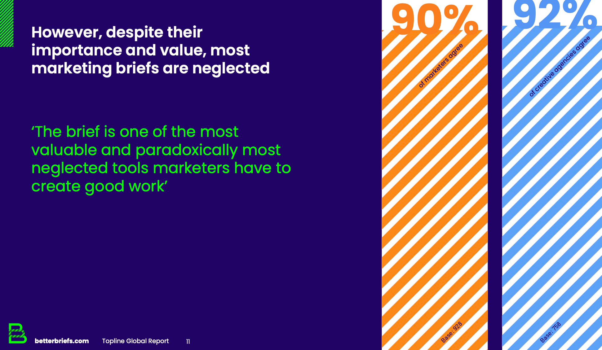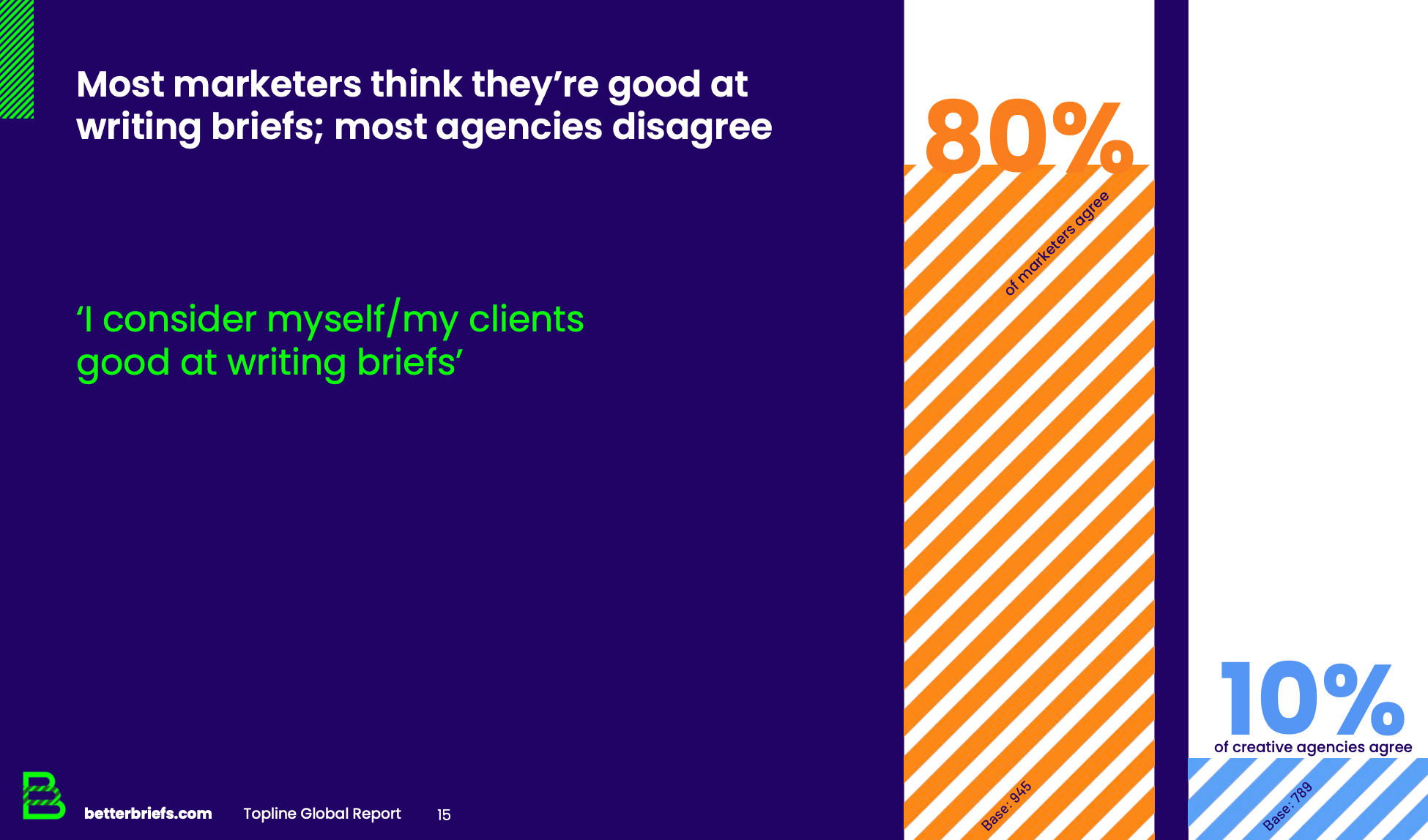 82% of marketers and 83% of creative ago agencies agree that writing briefs is hard, regardless of their years of experience, so that's one of the reasons, but why?