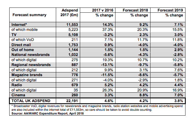 Chart of the Day: UK adspend is at a record £22.2 billion for 2017, the eighth year of consecutive growth